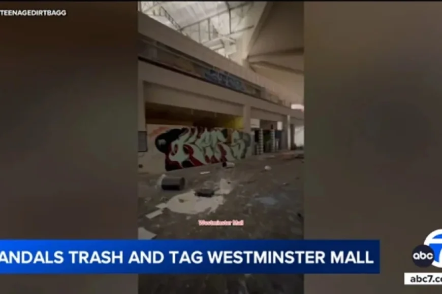 The Westminster Mall, closed since October 2025, has recently become a hotspot for vandalism and trespassing. Once a bustling retail hub, it now attracts both curious visitors and vandals, leading to extensive damage within the premises. Broken glass, flooding, and debris are evident throughout the building, illustrating its decline.