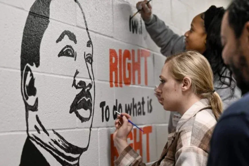 On January 15, 2024, in Kansas City, volunteers from Burns & McDonnell, including Lauren Baratta, Keyera Collins, and Matt Oates, painted a mural honoring Dr. Martin Luther King Jr. This event marked part of the Martin Luther King Jr. Day of Service at Pitcher Elementary School, located at 9915 East 38th Terrace. This day commemorates the civil rights leader’s birthday, acknowledged as a federal holiday since 1983, when President Ronald Reagan signed it into law.