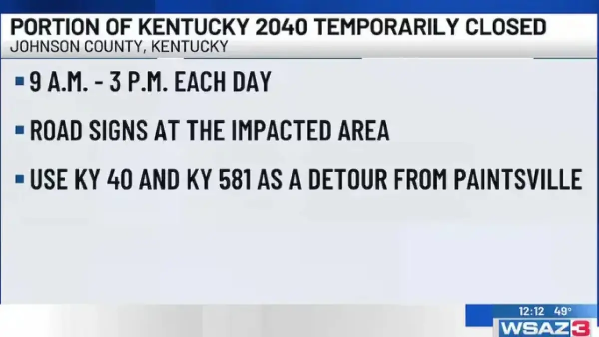 Johnson County, Kentucky, is experiencing a temporary closure on Kentucky 2040. This closure is in effect for two days, specifically January 13 and January 14.