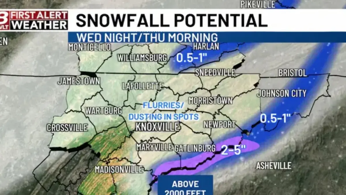 - Some flurries are possible in Knoxville, but accumulations will be minimal.