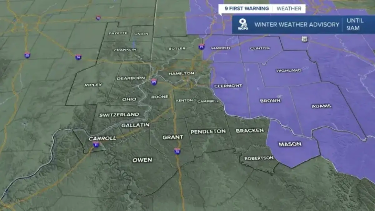 The National Weather Service has issued a Winter Weather Advisory for multiple counties, effective until 9 a.m. today. This alert affects Adams, Brown, Clermont, Clinton, Highland, Mason, and Warren Counties. Light snowfall is currently covering the roads, with an expectation of an additional inch of snow in some areas.