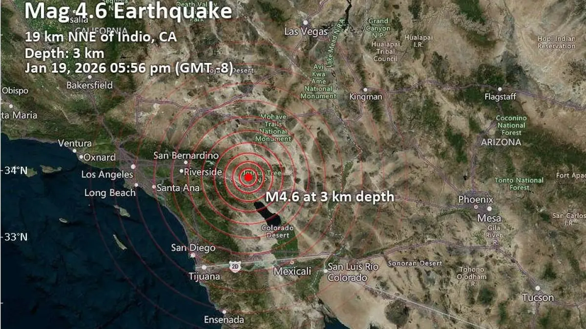 The main earthquake was measured at magnitude 4.9, occurring at about 5:56 p.m. Pacific Time, with a very shallow depth near 3 km (about 2 miles). Shallow earthquakes often feel sharper near the epicenter because the seismic energy reaches the surface quickly, which helps explain why the quake was widely felt across the Coachella Valley and reported in parts of Riverside County, Los Angeles, and San Diego.