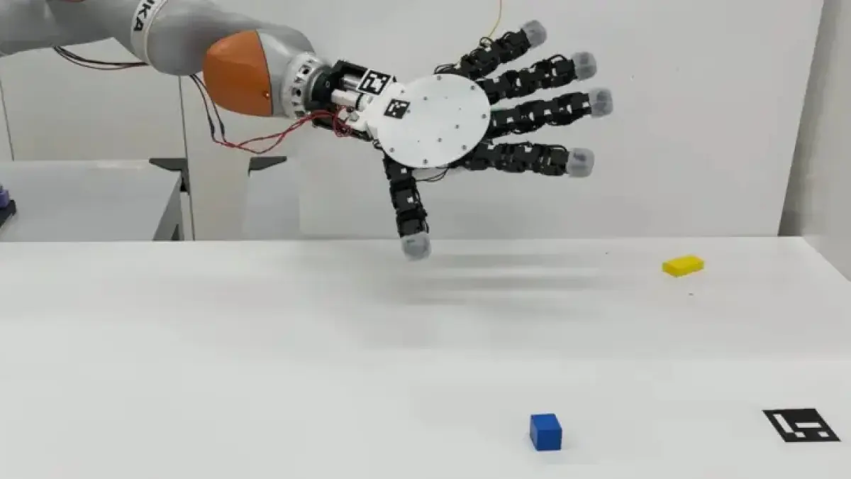 The fingers of the robotic hand can wrap around objects individually or together, allowing for an array of grasping techniques. This design departs from the traditional single-thumb approach, utilizing any finger pairing for gripping.