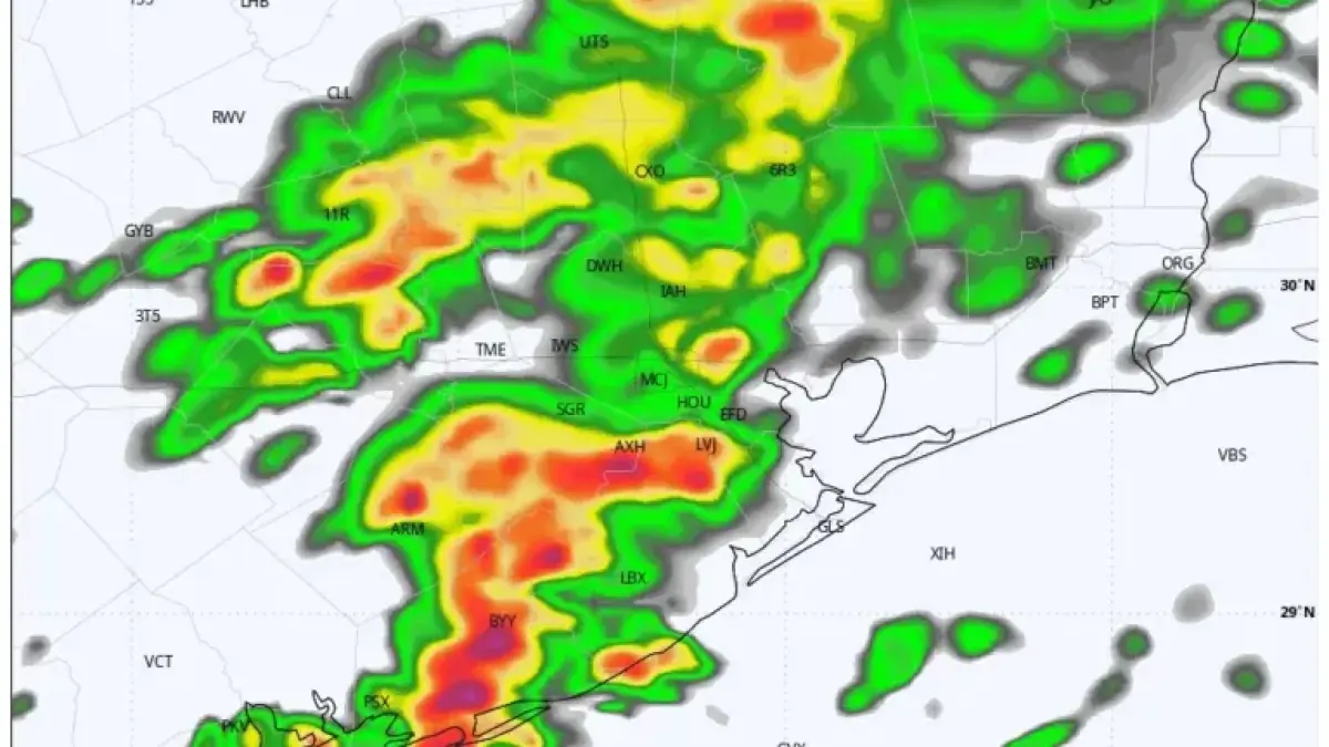 This Arctic front is forecasted to reach Houston on Saturday. While Friday is expected to remain mild, thunderstorms may develop Saturday morning. This precipitation is likely to fall as rain, which is crucial for anticipating later freezing conditions.