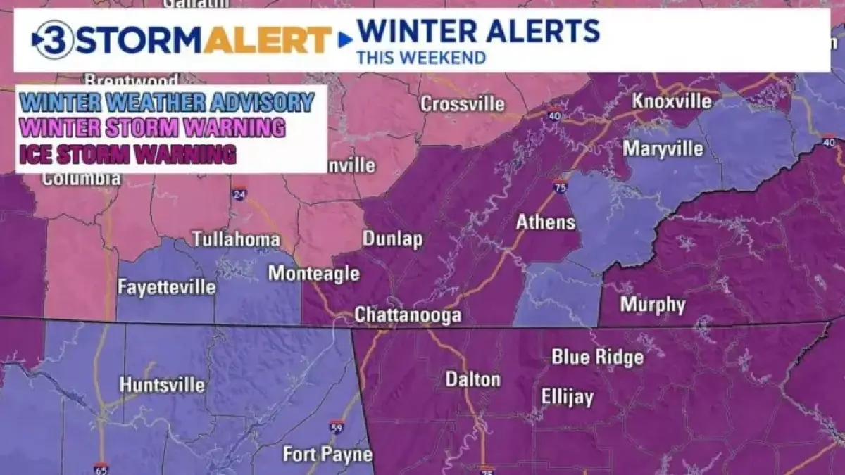 - Blue Ridge Mountains: Anticipating ice accumulations of up to 0.25 inches.