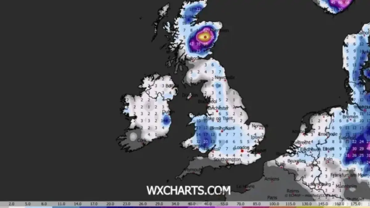 Advanced weather models indicate that a significant winter snowstorm is set to impact the UK on February 9. This storm could deliver up to 69 inches of snow, primarily across the Scottish hills. Nearly 90% of the country is expected to experience snowfall on this date.