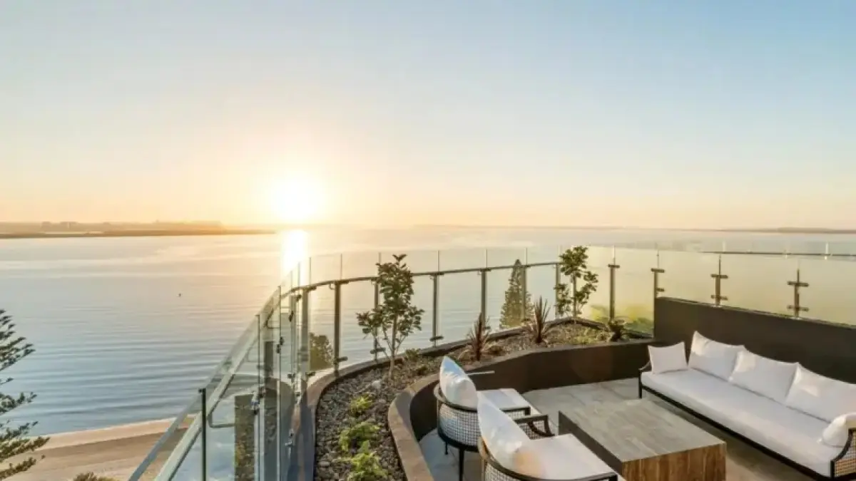 Floor-to-ceiling glazing provides breathtaking panoramic views of the water, allowing residents to enjoy both sunrise and sunset from levels four to 11. Community amenities include a barbeque entertaining area on the ground floor and a rooftop lounge, perfect for gatherings.