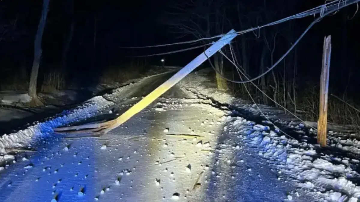 Driver Hits Utility Pole, Blocking Road in Icy Hit-and-Run Incident