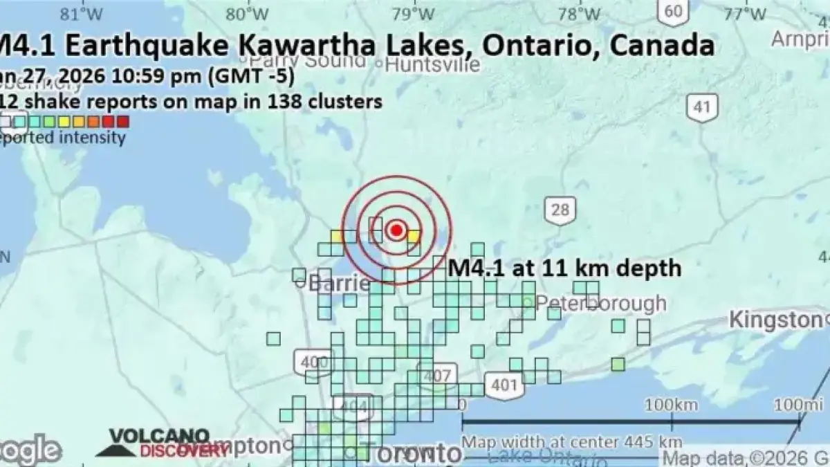 A magnitude 4.1 earthquake struck the Kawartha Lakes region, located north of Toronto, Canada, prompting various reports of shaking from residents in nearby areas. The tremor, which occurred on an unspecified date, was felt across a significant radius, highlighting the event’s impact on local communities.