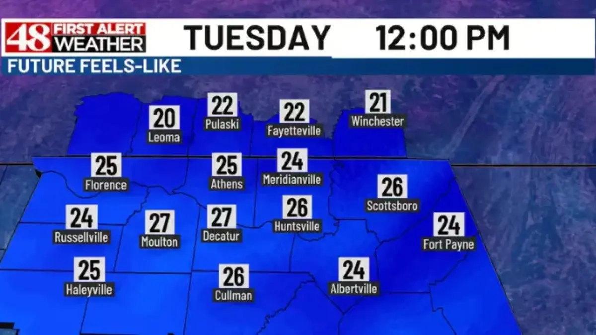 The weather forecast for Huntsville, Alabama, indicates a cold start to the week. On Tuesday, residents should prepare for significant frost that developed overnight. For those who drive, allocating an extra 5 to 10 minutes to scrape windshields is advisable.