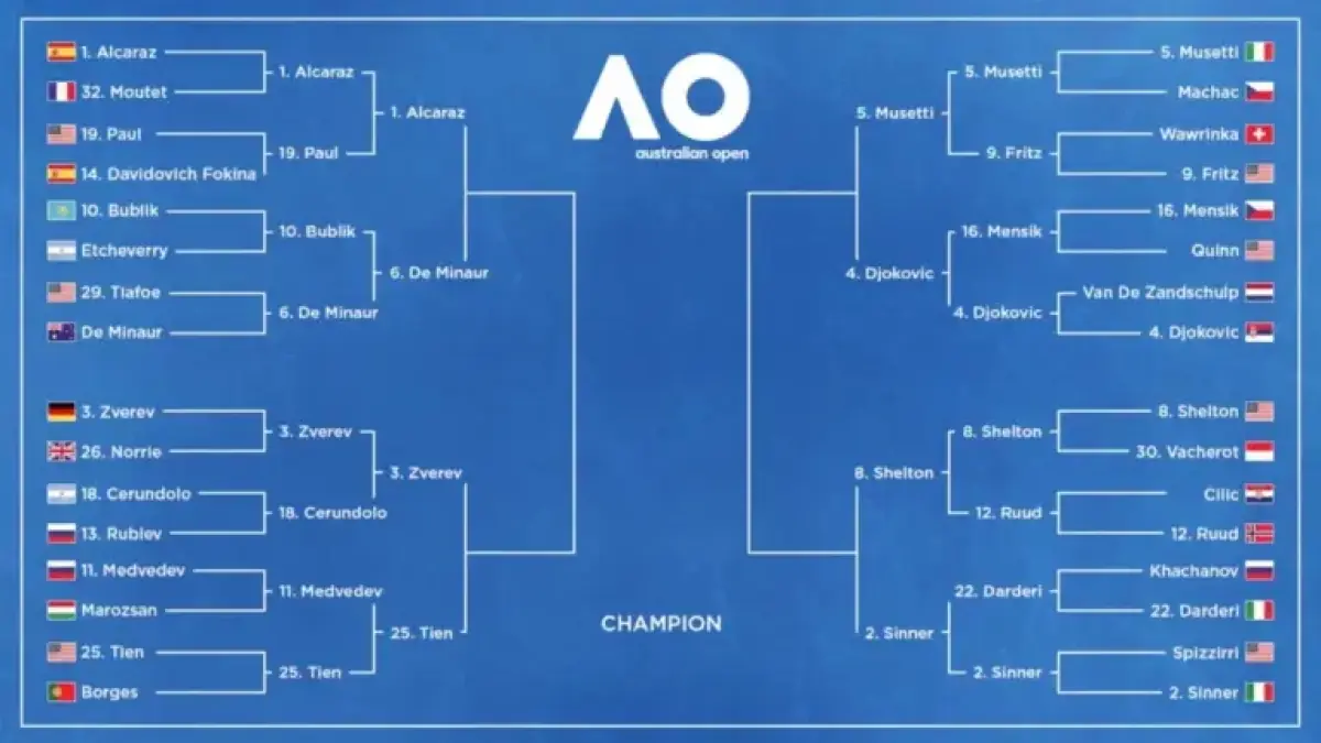 - Ben Shelton: The 23-year-old American reached the quarterfinals for the third time in four years. He came back from losing the first set against Casper Ruud, finishing with a score of 3-6, 6-4, 6-3, 6-4.
