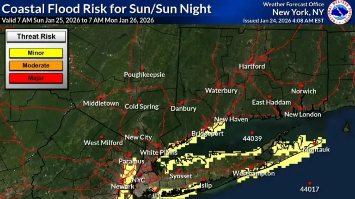 - Areas at risk include southern Westchester, the Bronx, northern Queens, and regions of Long Island.
