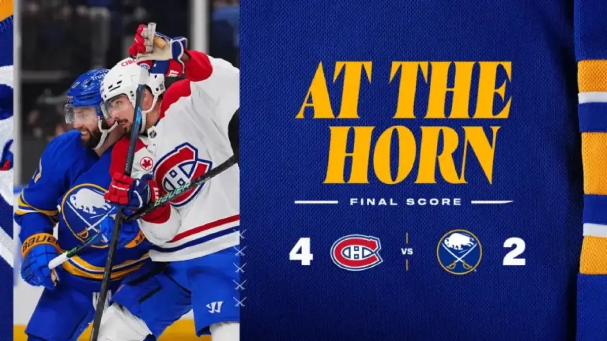 The loss puts Buffalo just two points behind the Canadiens, who are now positioned ahead in the Eastern Conference standings. The teams are evenly matched in their season series, each having secured two victories against the other.