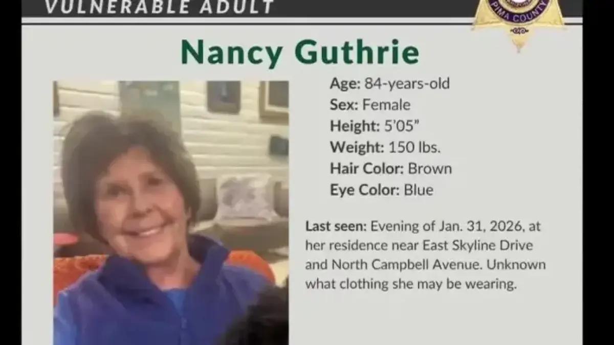 The Pima County Sheriff’s Department is actively searching for a missing woman in the Catalina Foothills area of Tucson, Arizona. Nancy Guthrie, an 84-year-old woman and the mother of Today Show anchor Savannah Guthrie, was last seen at her residence.