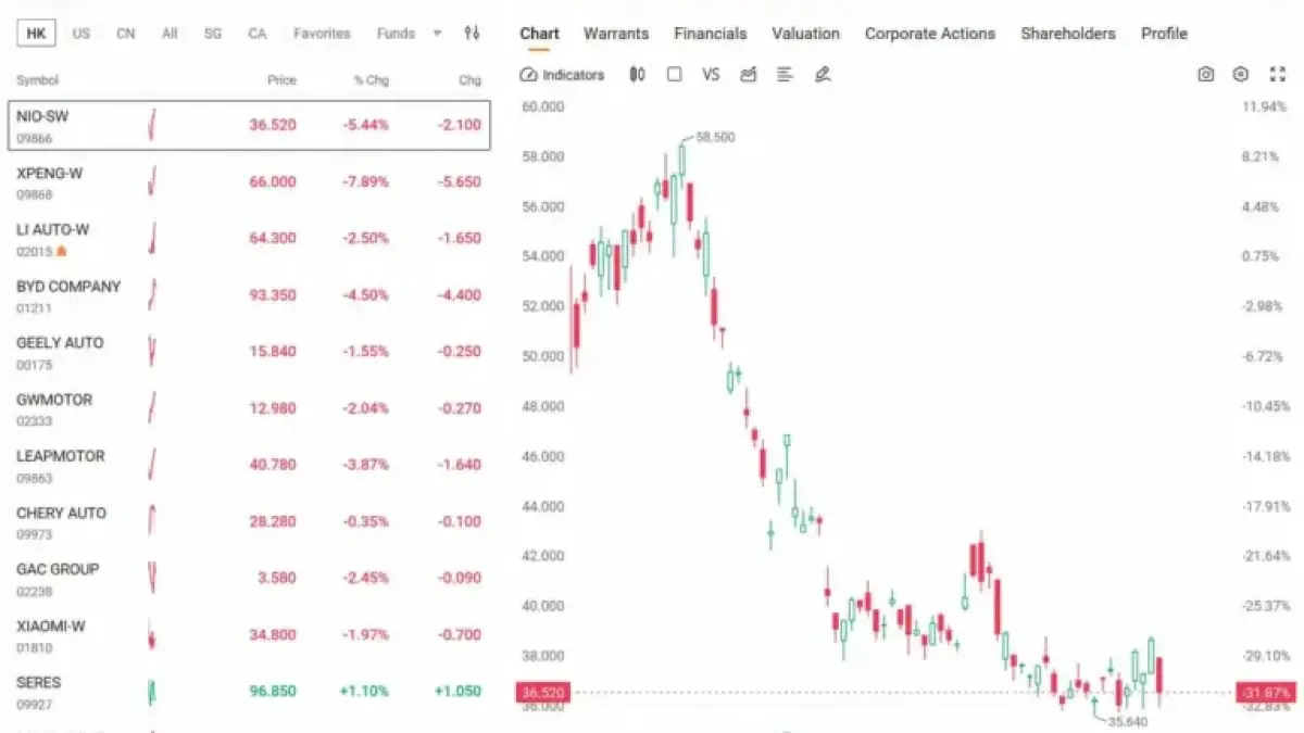 - Xpeng: Down 7.89%