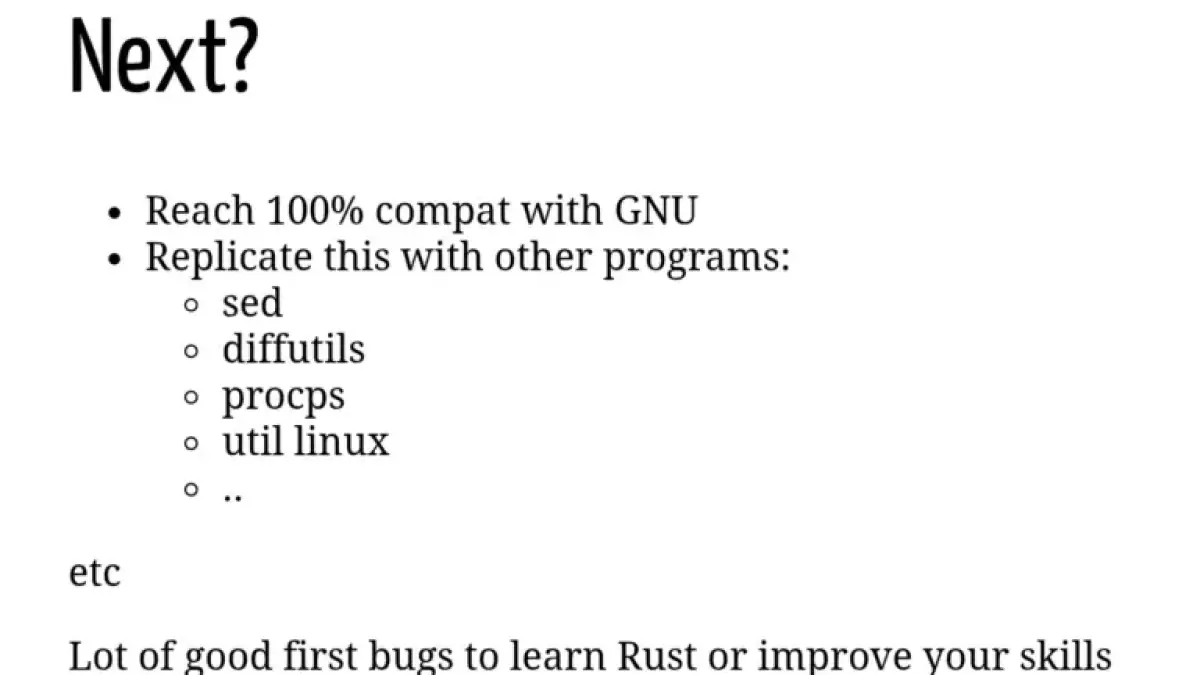 - Future Goals: The team aims to replicate the success of Rust Coreutils for other essential Linux applications.