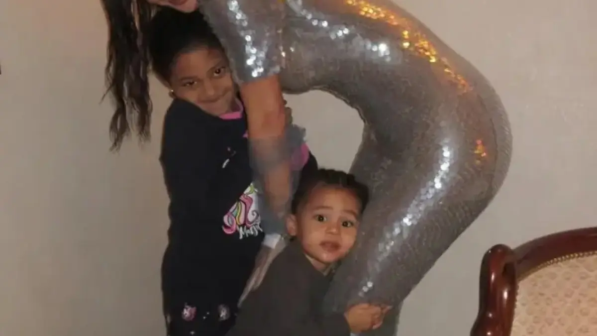 The party featured elaborate decorations and activities. Stormi, 8, wore a pink T-shirt and box braids, while her younger brother, Aire, 3, was held by their mother.