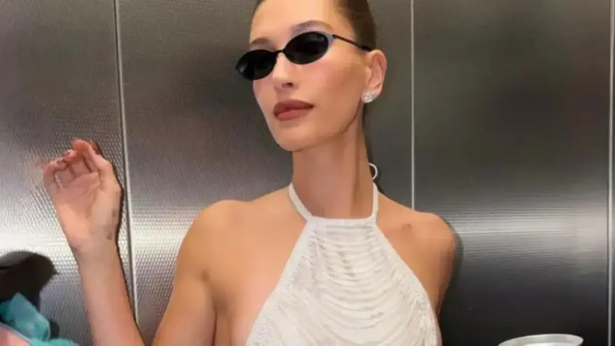 Hailey Bieber, known for her striking fashion sense, switched from a sheer black dress to a dazzling silver ensemble. This custom design by Ludovic de Saint Sernin featured crystal-encrusted strands, a backless halter neckline, and a micro-mini hemline, perfectly enhancing her glamorous look.