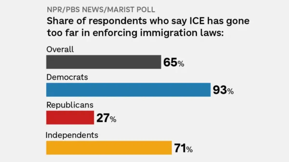 - 65% of Americans say ICE has gone too far.