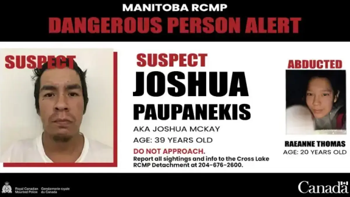 Authorities in Manitoba have issued a dangerous person alert following the alleged abduction of a young woman. The alert is specifically for the Pimicikamak Cree Nation and neighboring regions. Police are seeking information about Joshua Paupanekis, a 39-year-old man deemed armed and dangerous.