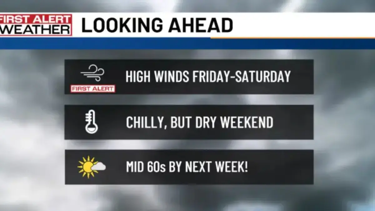 Winds are anticipated to increase significantly from Friday night into the weekend. Western counties are under a high wind watch, with gusts predicted to reach up to 65 mph. Such strong winds could result in downed trees and power lines.