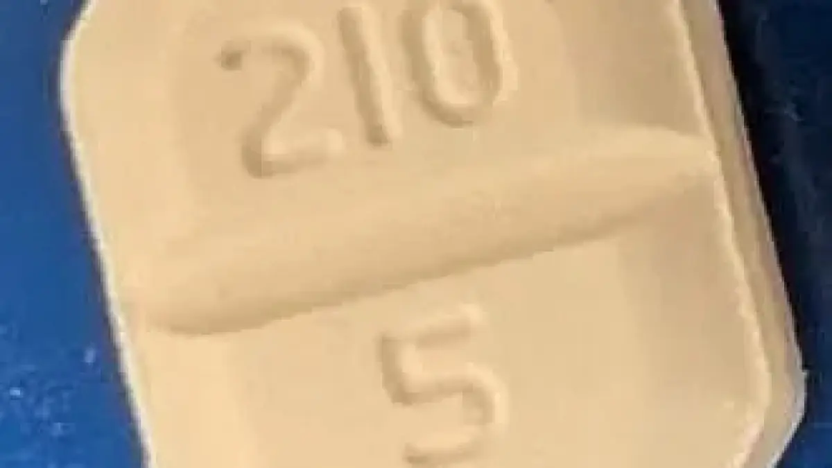 The correct amlodipine tablets are flat, eight-sided, and white to off-white, marked with “210” and “5” on one side. In contrast, the incorrect midodrine tablets are white and round, featuring “M2” on one side.