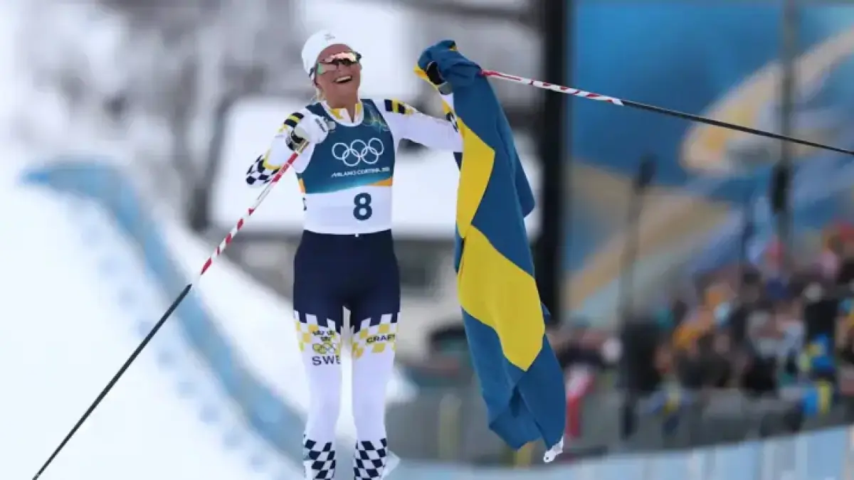 As she crossed the finish line, Karlsson proudly waved a Swedish flag, celebrating her gold medal win. She then welcomed Andersson, wrapping her teammate in the flag as they acknowledged their remarkable one-two finish for Sweden.