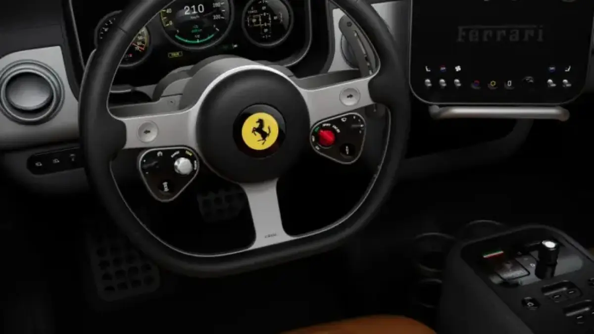 The steering wheel draws inspiration from classic Ferrari designs. It boasts a simplified three-spoke layout made from 100% recycled aluminum. Remarkably, this steering wheel is lighter than standard models, weighing 400 grams less.