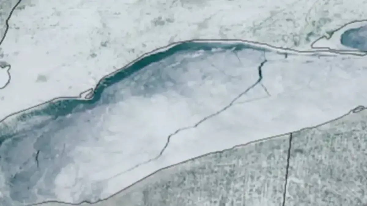 A satellite operated by the National Oceanic and Atmospheric Administration (NOAA) has identified a significant crack in the ice over Lake Erie. This fissure spans approximately 80 miles, extending from Port Burwell in Canada to areas near Cleveland, Ohio. The satellite imagery was captured on a Sunday, with details released the following day.