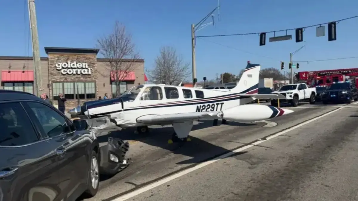 A small aircraft encountered serious difficulties on Monday, resulting in an emergency landing on a busy roadway in Gainesville. The incident occurred near the intersection of Browns Bridge Road and Pearl Nix Parkway, directly in front of a Golden Corral restaurant.