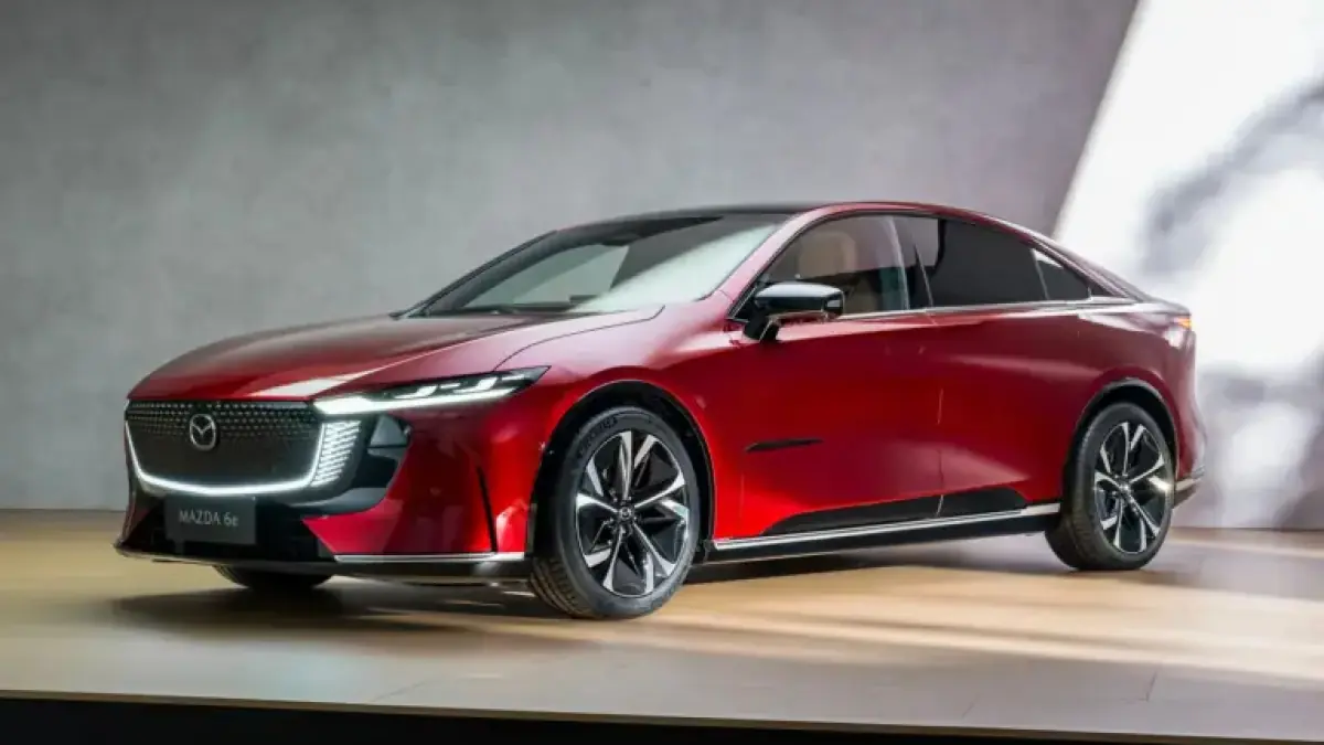 Revealed in early 2025, the Mazda 6e exemplifies the evolution of Mazda’s Kodo design language. It features a low roofline, frameless doors, and distinctive LED lights that resemble ‘wings’ to show battery status during charging.