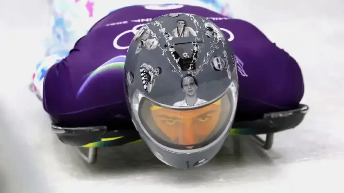 - Israeli skeleton athlete Jared Firestone wearing a kippah honoring 11 victims of the 1972 Munich Games.