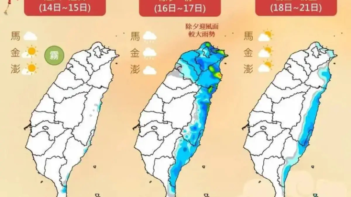 Meteorologist Liu Pei-teng emphasizes that this cold front will persist into the second day of the Lunar New Year. Rainfall will vary, with chances of localized showers in northern and northeastern Taiwan as well as the Hengchun Peninsula.
