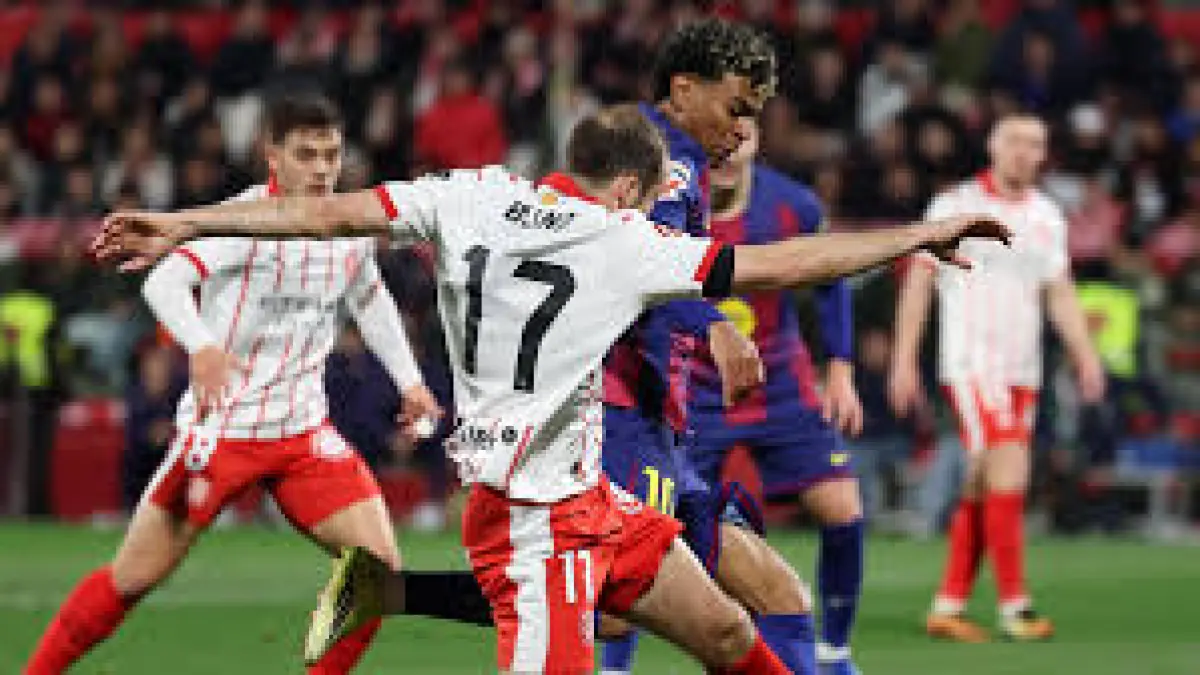 Girona beat Barcelona 2-1 after Lamine Yamal missed a first-half penalty and Fran Beltrán scored a late winner; Barcelona remain two points behind Real Madrid.
