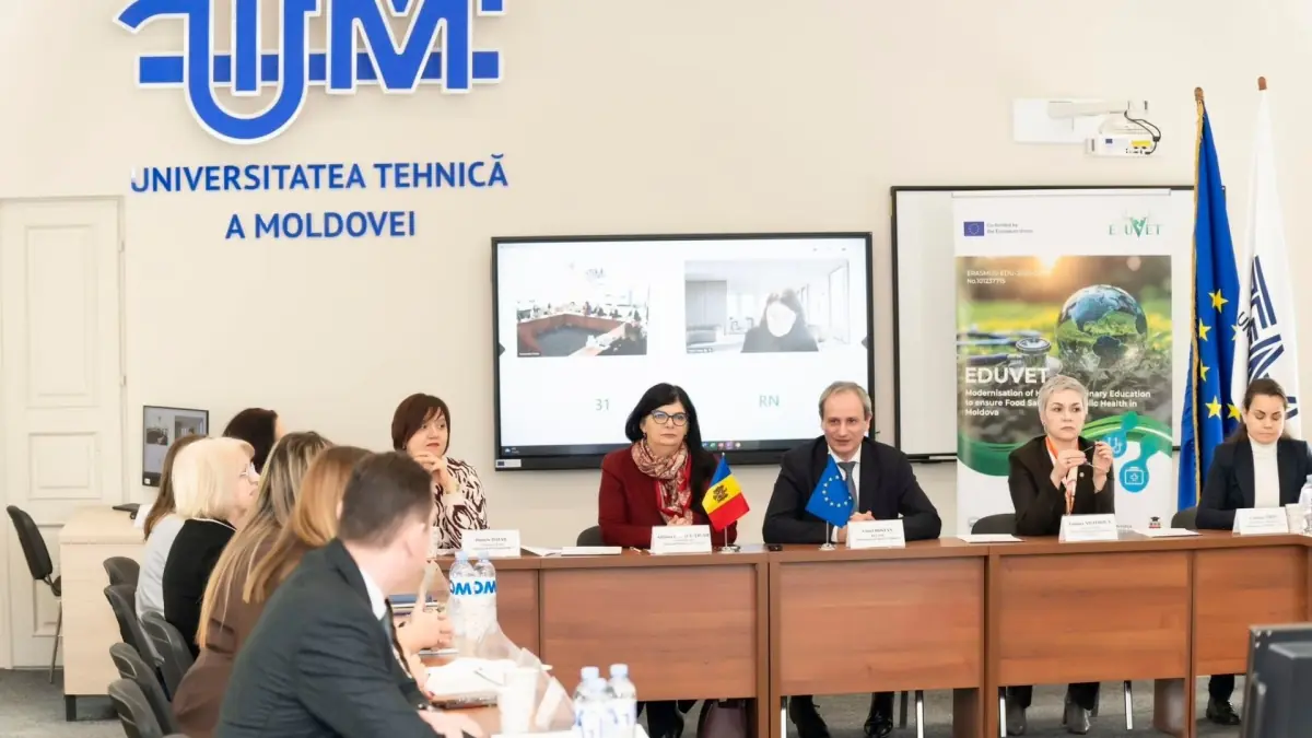 The project, formally titled "Modernisation of Higher Veterinary Education to ensure Food Safety and Public Health in Moldova" (EDUVET), held its launch meeting on 19–20 February 2026 with participation from academic institutions and national authorities. The Ministry of Agriculture and Food Industry (MAIA) was represented at the opening by Tatiana Nistorica, the ministry's secretary of state, who framed the project as consistent with ministry priorities in animal health, food safety, public health and sustainable development of the agro‑food sector.
