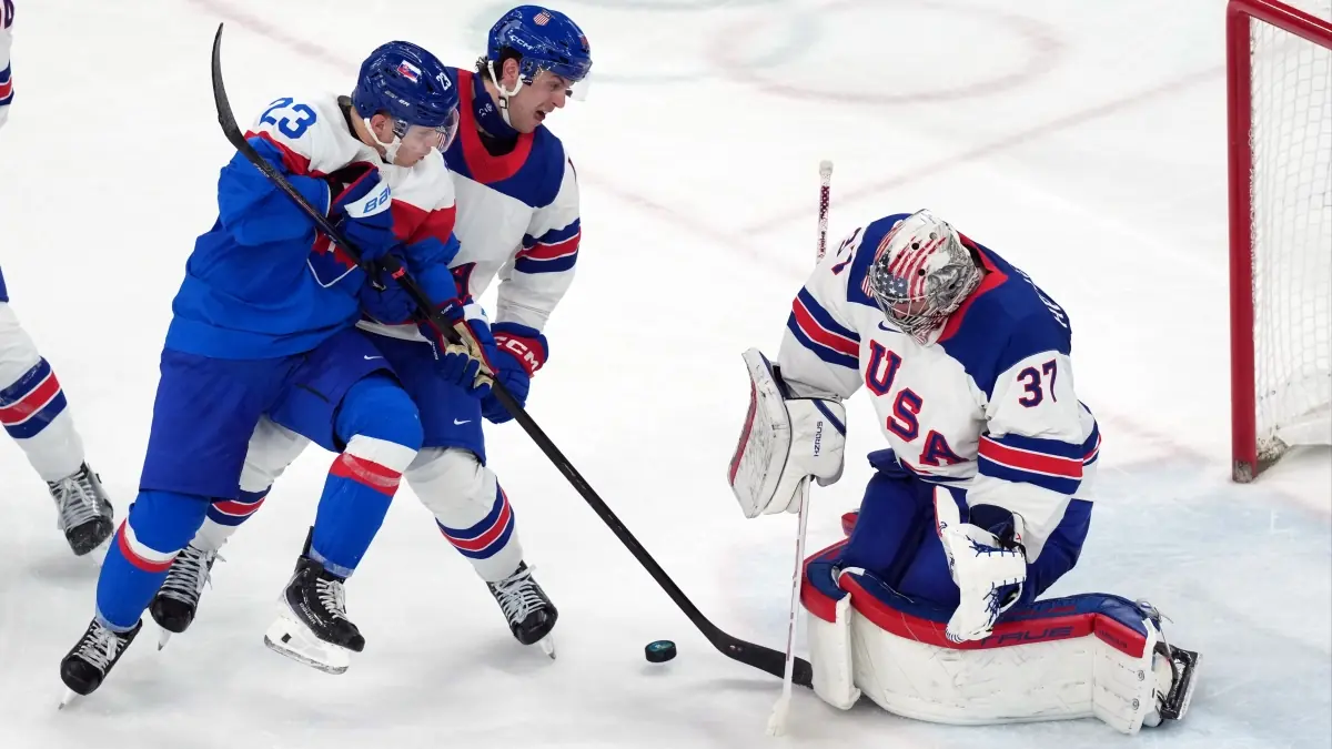 Image note: Connor Hellebuyck took the ice before the game against Slovakia in a men’s ice hockey final during the 2026 Winter Olympics.