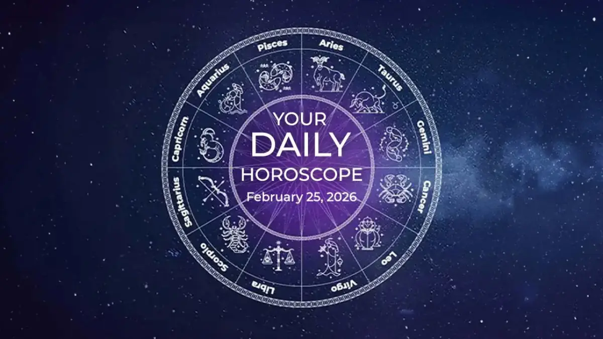 Your February 25 horoscope brings back themes of money and self-worth. Be cautious with spending and recheck financial details. An old income source may reappear. Wednesday is also about emotional value — where have you been undervaluing yourself? Where have you been overcompensating? Adjust accordingly.