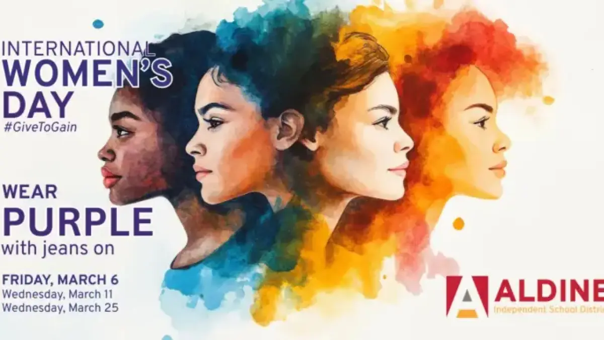 Purple, the official color of International Women’s Day, symbolizes justice, dignity, and respect. Aldine ISD encourages staff and students to wear purple with blue jeans on March 6, as well as on March 11 and March 25. Participants are invited to share their photos on social media to highlight their commitment to recognizing women’s contributions.