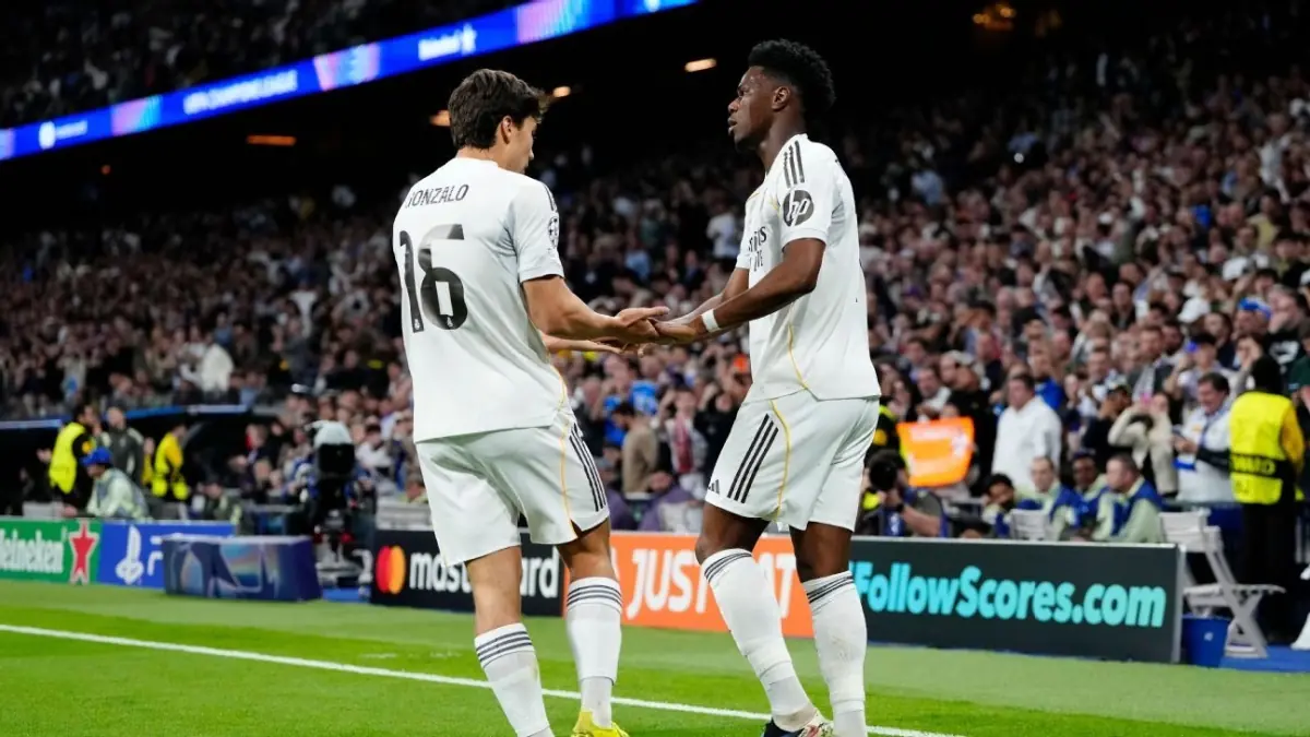 16' — ⚽ GOAL — Aurélien Tchouaméni (REAL MADRID) 1–1 After winning the ball high up the pitch, Tchouaméni switches play to the right, Valverde delivers a cross to the edge of the box, and the French midfielder arrives to finish clinically past Trubin. His first goal of the season. Real Madrid restore their aggregate lead.