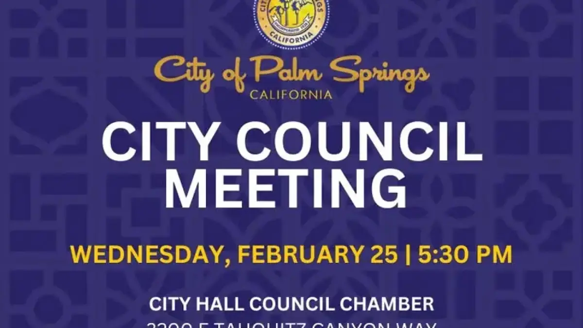 The Palm Springs City Council is set to convene on Wednesday, February 25, at 5:30 p.m. The meeting will cover several important topics, including vehicle sales regulations and budget reviews.