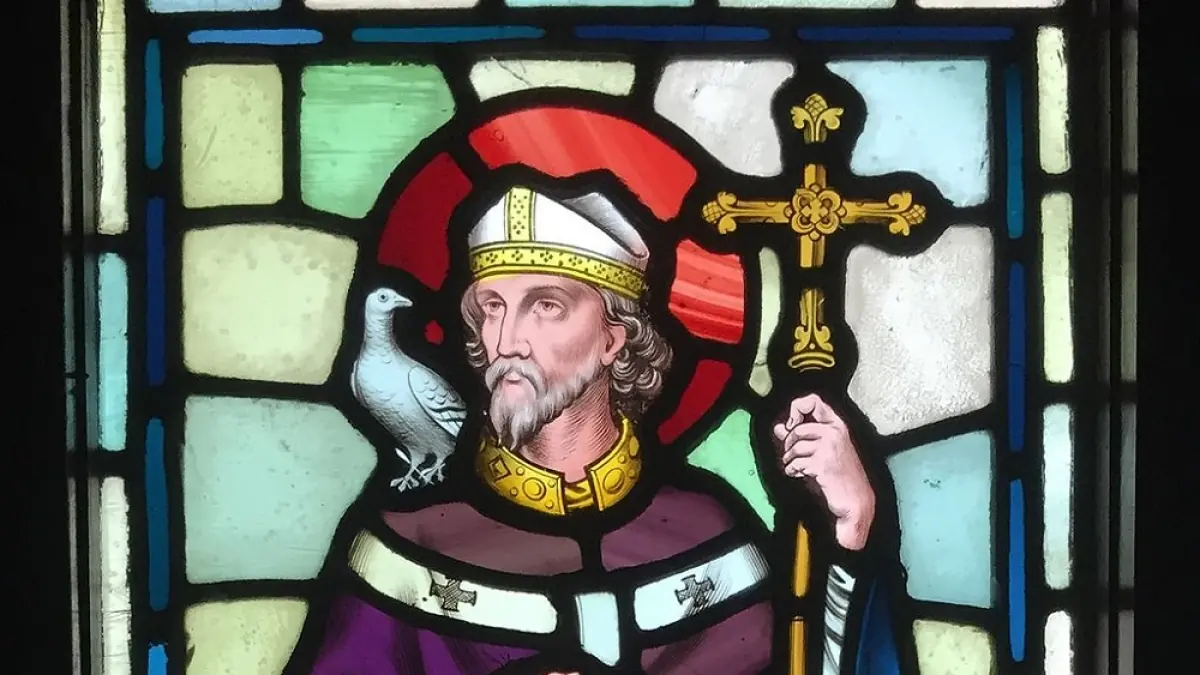 St David — Dewi Sant in Welsh — was born on the south‑west coast of Wales near where the city of St Davids is today and is remembered through pilgrimage and liturgy. Historical texts shaped his image: a Latin life known as Vita S. David was written by Rhygyfarch around 1080; Rhygyfarch was associated with Llanbadarn Fawr in modern Ceredigion and his writing underpins the long devotion to the saint and the many medieval churches dedicated to him. That devotional tradition produced later works such as the 14th‑century Buchedd Dewi, which records David’s last words as gwnewch y pethau bychain, meaning “do the little things. ”