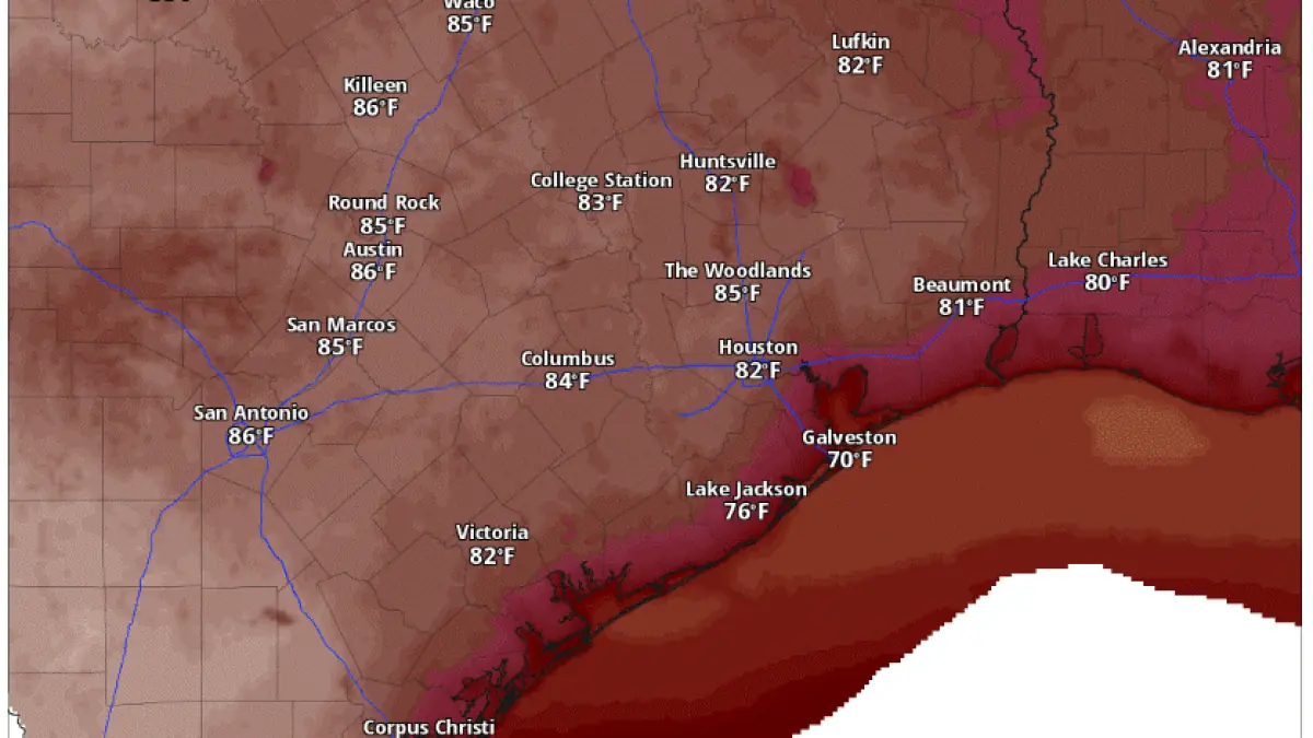A forecast high of 86 degrees on Saturday, Feb. 28 will flirt with the daily record of 87 degrees at Austin-Bergstrom International Airport set in 1978. The continuation of southerly flow from the Gulf of Mexico is the proximate cause of the warm afternoons and elevated humidity, and that same flow is producing a range of near-term effects across the region.