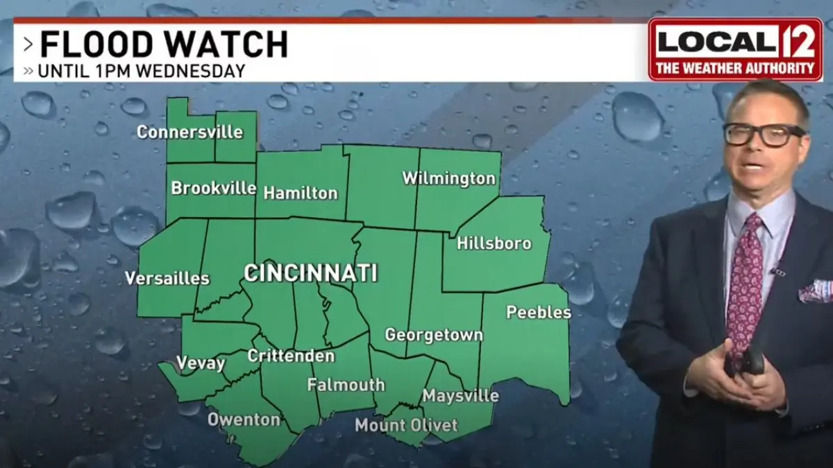 The flood watch in the Miami Valley covers areas along and south of Interstate 70. Two to three inches of rain fell across the region, with the heaviest band setting up south of Dayton and continuing through overnight hours. Dayton area meteorologists urged residents not to drive through flooded roads under any circumstances.