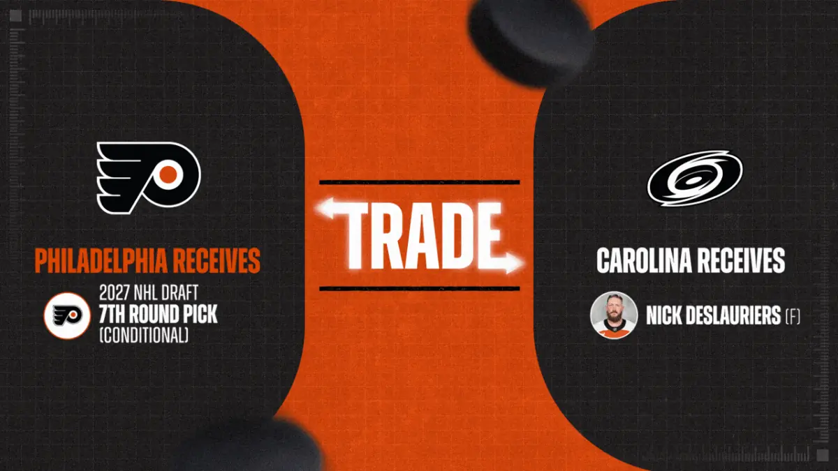 General Manager Daniel Briere announced the Flyers acquired a conditional 7th-round pick in the 2027 NHL Draft from Carolina in exchange for Deslauriers. The deal leaves Philadelphia with nine total picks in 2027: two first-round picks (the Flyers’ own and a conditional pick from Toronto), two third-round picks (the Flyers’ own and Los Angeles’), and two seventh-round picks (the Flyers’ own and the one acquired from Carolina).