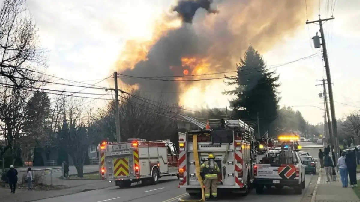 Fire crews responded to a large structure fire at a seniors complex on 7th Ave., near the Cedar Valley Connector. Flames and heavy smoke were visible as firefighters worked to bring the blaze under control. The building was fully engulfed as crews battled the fire.