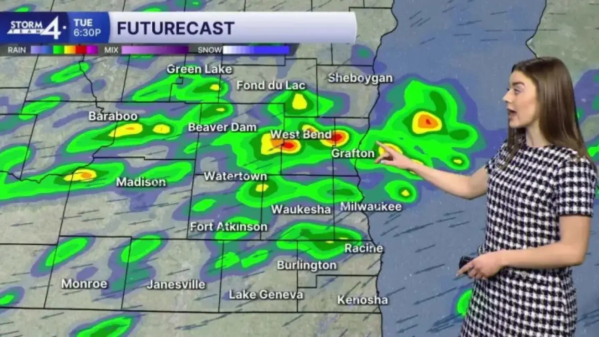 Southeast Wisconsin’s snow storm weather forecast is colliding with a very different immediate threat: showers and storms expected this evening with a large hail risk, followed by lingering precipitation overnight and a transition toward a mixed setup by Wednesday morning.