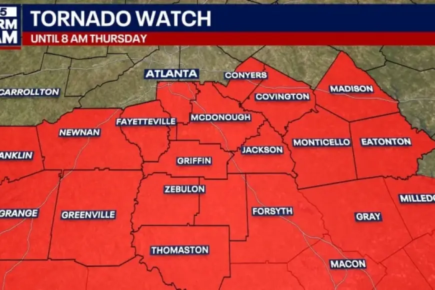 By 6: 38 a. m. ET on March 12, 2026, a Tornado Watch remained in effect until 9 a. m. ET for parts of central and east-central Georgia, even as forecasters described the overall threat shifting east. The watch earlier covered a larger portion of Georgia, but it was cancelled for 19 counties in north-central and west-central Georgia as storms moved out of those areas. Counties where the watch was cancelled included Clayton, Fayette, Henry, and Rockdale in the metro Atlanta area, along with Coweta, Harris, Muscogee, Troup, and Spalding, among others; cities including Columbus, Peachtree City, Griffin, and Newnan were no longer under the watch.
