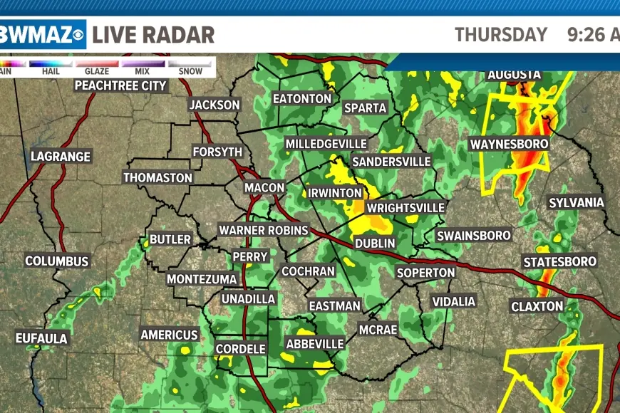 A volatile stretch of weather swept across Central Georgia early Thursday, putting Macon-area viewers on alert as 13WMAZ weather coverage followed tornado warnings, a broader tornado watch, and school delays tied to the storm line moving across the region.