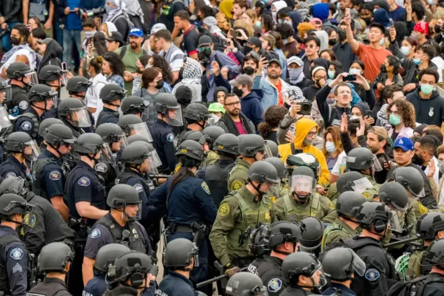 The May 15 response came after a makeshift encampment had stood for two weeks, beginning in late April 2024. Protesters sought university divestment from companies and institutions with ties to Israel and weapons manufacturers, support for an end to the Israeli occupation of the Gaza Strip, and reinvestment of funds toward students and workers, among other demands. By the afternoon of May 15, the crowd had swelled to roughly 500 people when officers in riot gear from more than a dozen law enforcement agencies swept through the area. The sweep followed reports of a small group barricading itself into the Physical Sciences Lecture Hall adjacent to the encampment.