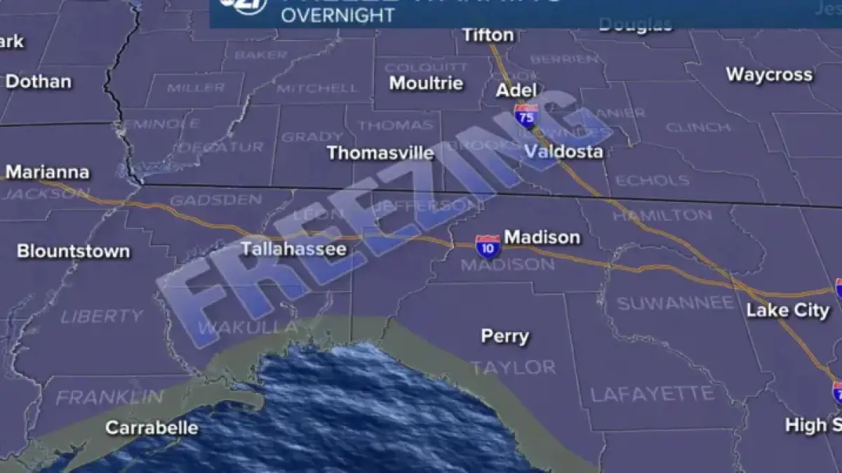 Forecasters issued an overnight freeze warning for inland areas expected on 03/17/2026. Late-day temperatures will fall into the forties and thirties before midnight.